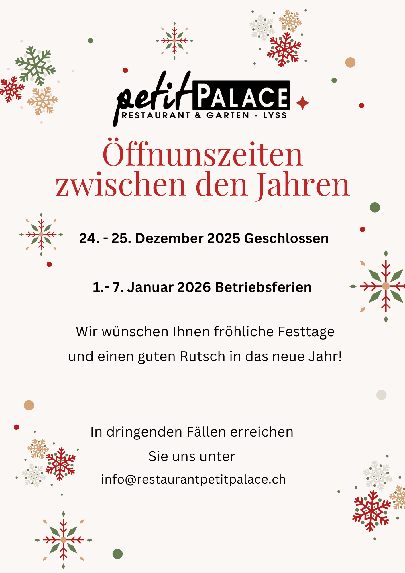 Am 24. und 25. Dezember 2025 bleibt unser Restaurant geschlossen.